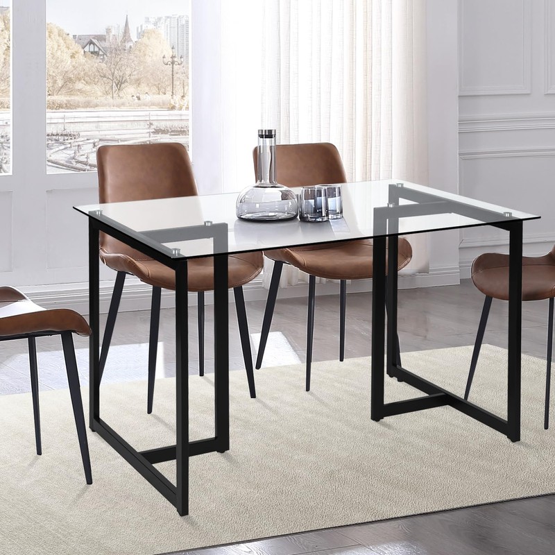 - Sleek Design with Glass Top: This dining table features a stylish 55.1-inch rectangular glass tabletop, adding a sophisticated touch to any dining room or kitchen with its modern and sleek design.