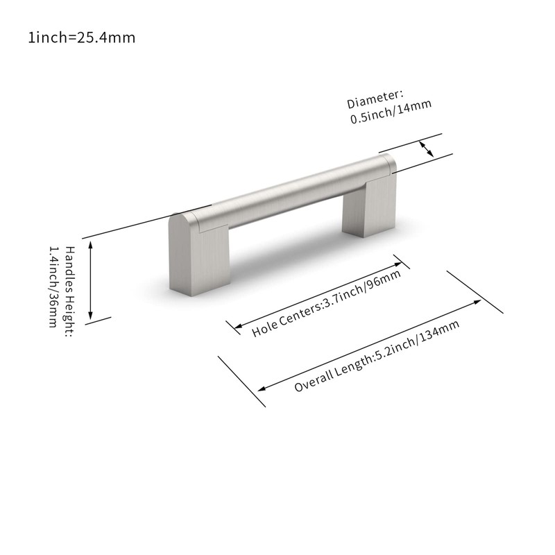 • 【Size】Our cabinet handles are 96mm center to center (hole spacing) and total length: 134mm, high: 36mm, tube diameter:14x14mm.