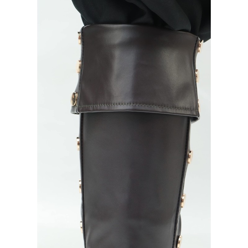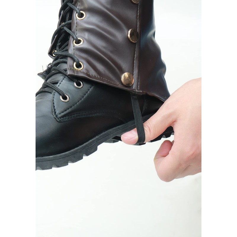 FURPHI Pirate Boot Covers with Studs Medieval Renaissance PU Leather Costume Boots Accessories (Brown)