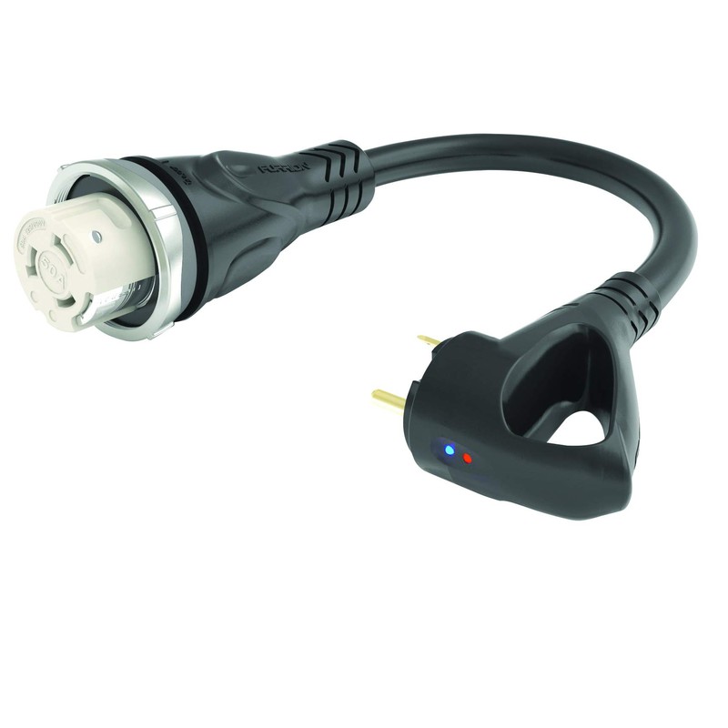 - PULLSMART, FAULTSMART & POWERSMART: PullSmart handle on male end allows you to safely disconnect and prevent power surge. FaultSmart technology helps indicate reverse-polarity and neutral-loss indicator. While PowerSmart technology features a voltage indicator to show a live connection with bright blue LED lights.