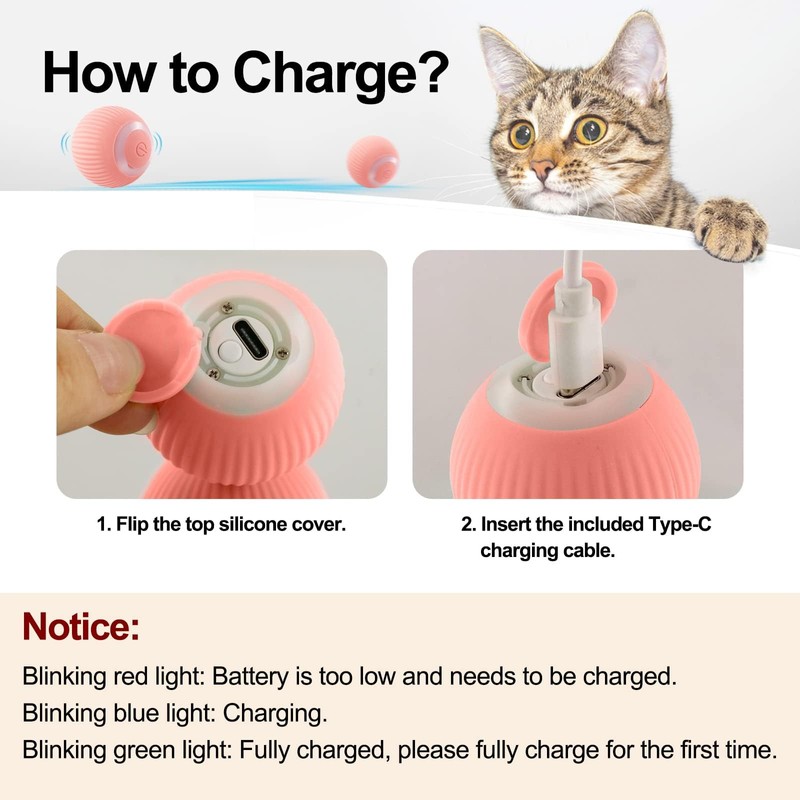 - 🏓【Rechargeable Cat Toy Ball】No need to repeatedly replace the battery, just plug in the charging cable for 1 hour, providing up to 2 hours of fun for your cat. Supports only DC 5v power adapter, does not support the use of fast charging!