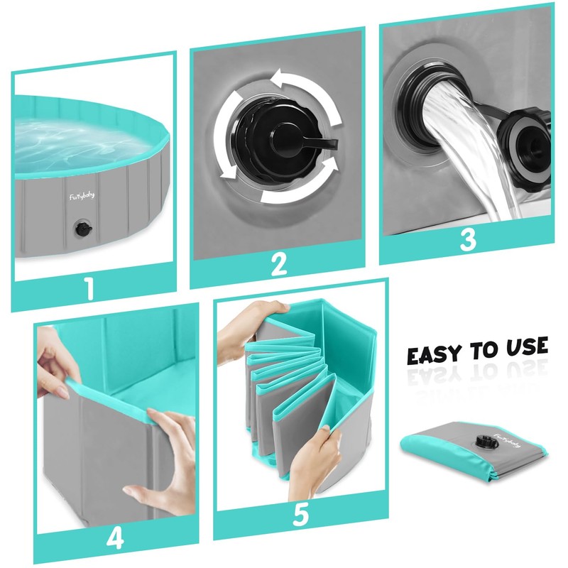 - FOLDABLE FOR EASY CARRYING - The hard plastic kiddie pool will be easily folded for storage and is perfect for outdoor pet traveling. Folded size: 12.2*9.4*3.3 inch (with the recyclable package).