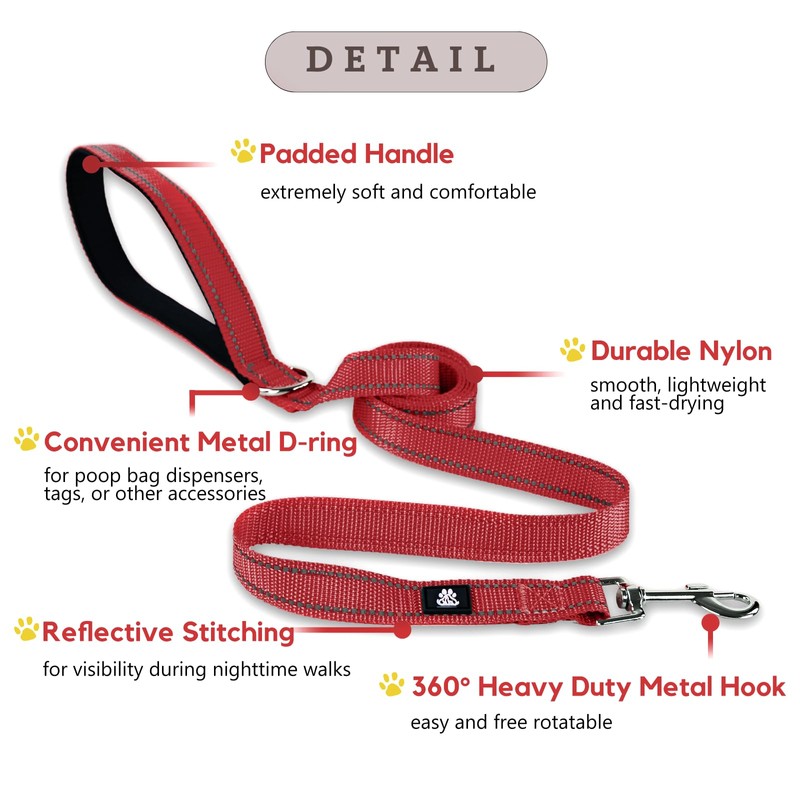 - 【PREMIUM METERIAL】The odorless and smooth nylon material with padded neoprene is safe, comfortable and durable, ensuring that it doesn't hurt your dog's skin. The padded handle of the dog leash is extremely soft, protecting your hands. Perfect for everyday use