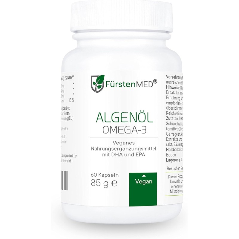 - Premium quality: original FürstenMED algae oil Omega 3 capsules (vegan) - high dose with 2000 mg gently processed algae oil per daily dose - 700 mg DHA & 320 mg EPA per daily dose - 60 vegan capsules of the highest quality class - laboratory tested and specially developed for the discerning customer