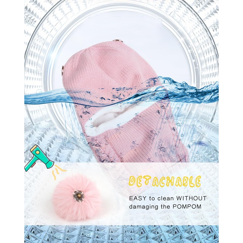 - Removable pom pom:The snap off pompom ears are also a great feature for washing,without having to worry about ruining the pom poms.If your child likes Mickey Mouse, this style of winter hat is great for them.