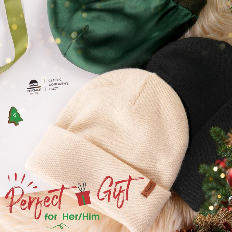 FURTALK FURTALK Womens Winter Warm Satin Lined Beanie Hats Silk Lining Unisex Knit Slouchy Caps