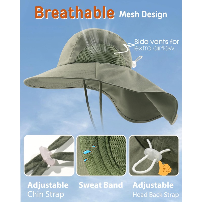 - Large Back Flap: Featuring a large back flap for superior sun protection, this hat includes UPF 50+ to shield against harmful UV rays and a sturdy wide brim for ample shade