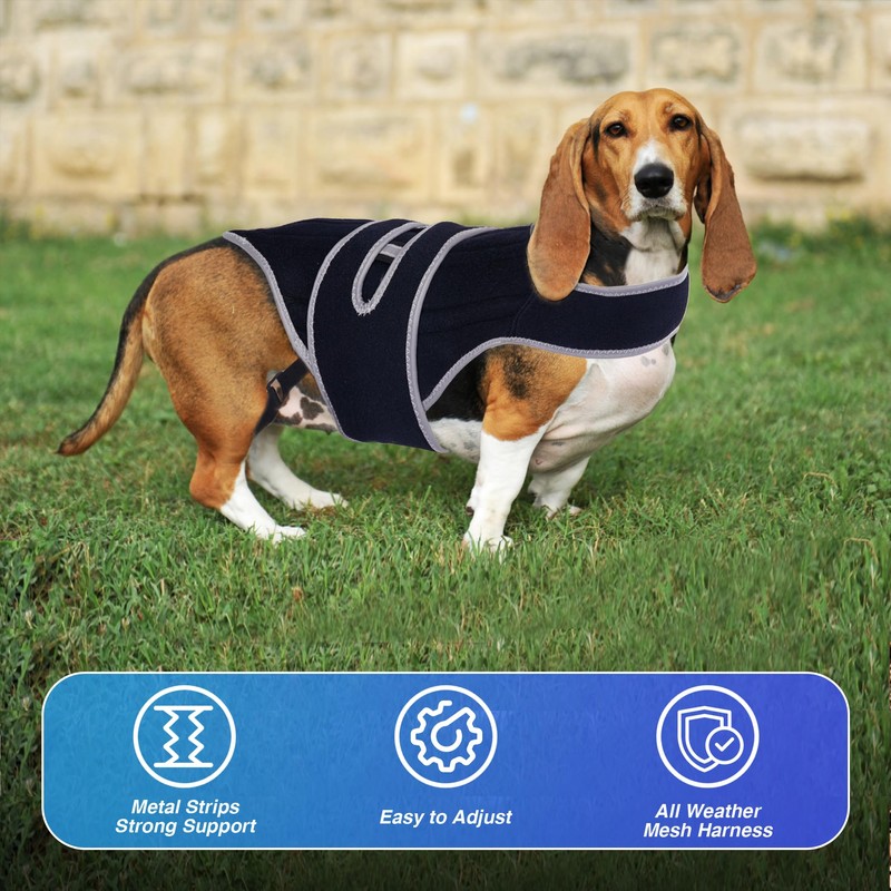 - Professional Strong Support: Our dog back brace stands out with its six high-quality metal strips, providing superior spinal support and stability without restricting daily activities. Superior to less robust options, our brace effectively reduces spinal pressure and pain. Ideal for dogs with conditions like IVDD, herniated discs, and arthritis, it's perfect for enhancing mobility during outdoor activities and providing essential support during home care.