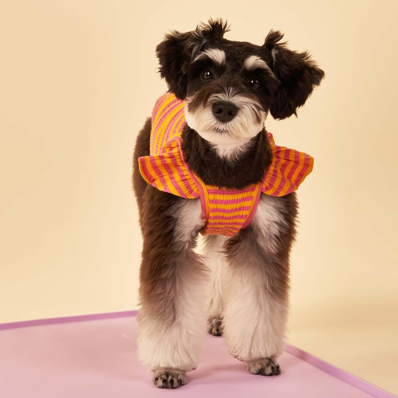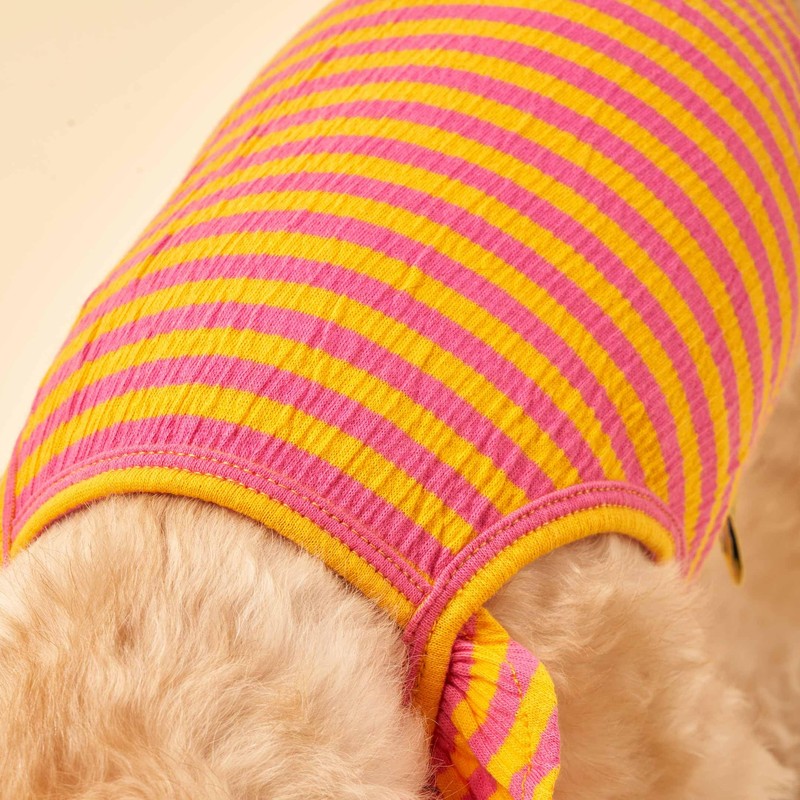 FURTiZEN Stripe Ruffle Tank for Dogs - Striped Dog Tank Top with Ruffle Sleeves (Yellow/Pink, Medium)