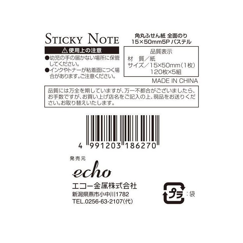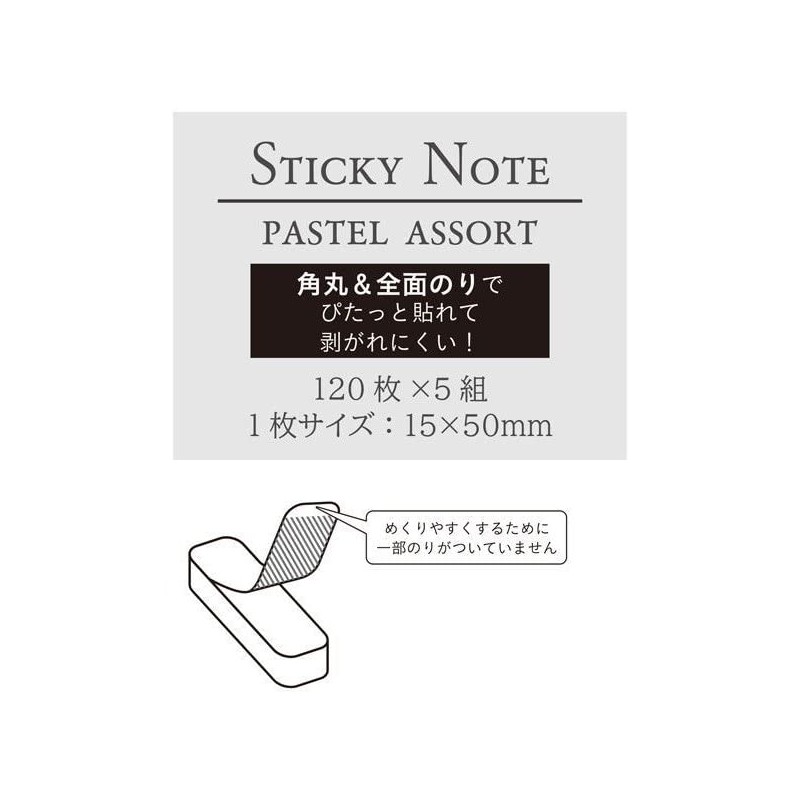 - Noten Full Glue, Rounded Corners, Pastel, 0.6 x 2.0 inches (1.5 x 5 cm), 120 Sheets x 5 Packs