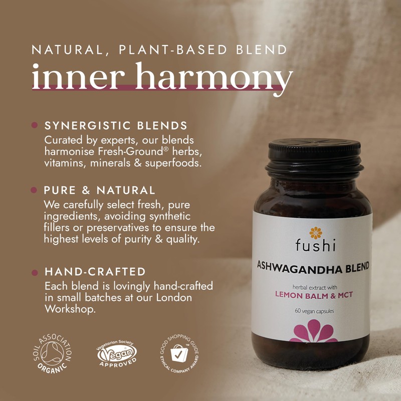 Fushi Ashwagandha Extract with Vegan MCT Capsules, 60 Caps | Fresh-Ground, High Strength & Wholefood | Min 5% Withanoloids | Uplifting & Nourishing | 100% Plant Based Formulation |Vegan,Made in the UK
