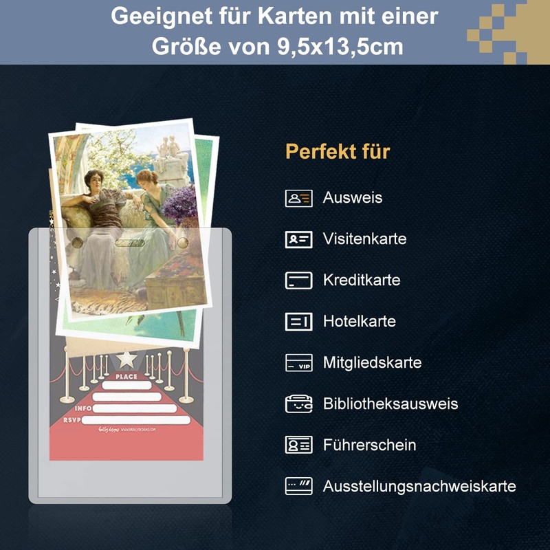 • Oversized: the size of the card case is 150 x 105 mm (length x width) and the applicable card size is 125 x 95 mm. Such as business cards, credit cards, bank cards, driving licences, business cards, various access cards, bus tickets, etc. The wider and extended design gives it more possibilities
