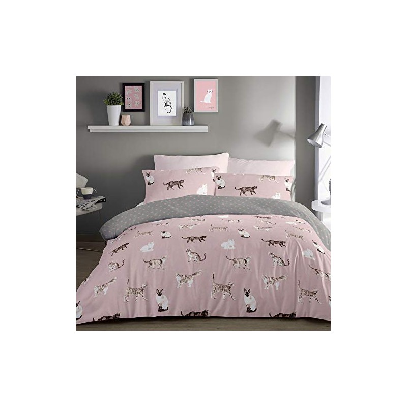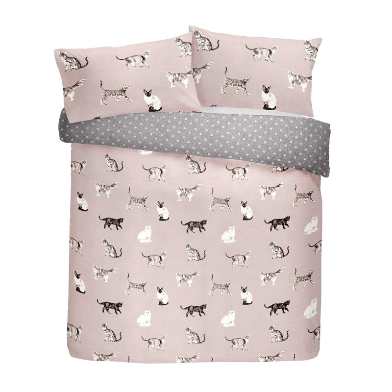 Fusion - Cats - Easy Care Duvet Cover Set - 3pcs, Double Bed Size in Blush