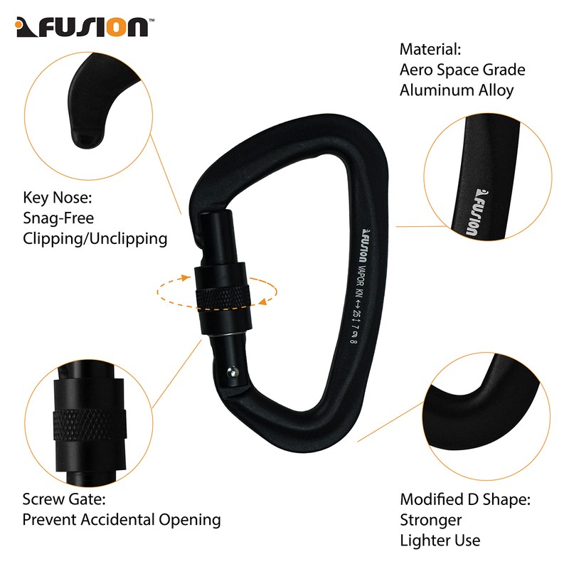 FUSION Climb Vapor III Military Tactical Matte Edition Aluminum Straight Gate Key Nose Modified D Carabiner Black, Hunting Carabiner (FP-8122-3ST-BLK) (Screw gate)