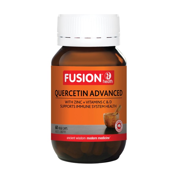 Fusion Quercetin Advanced combines quercetin with zinc and vitamins C and D to support immune system health. Quercetin also reduces inflammation and relieves mild allergy symptoms and their frequency.