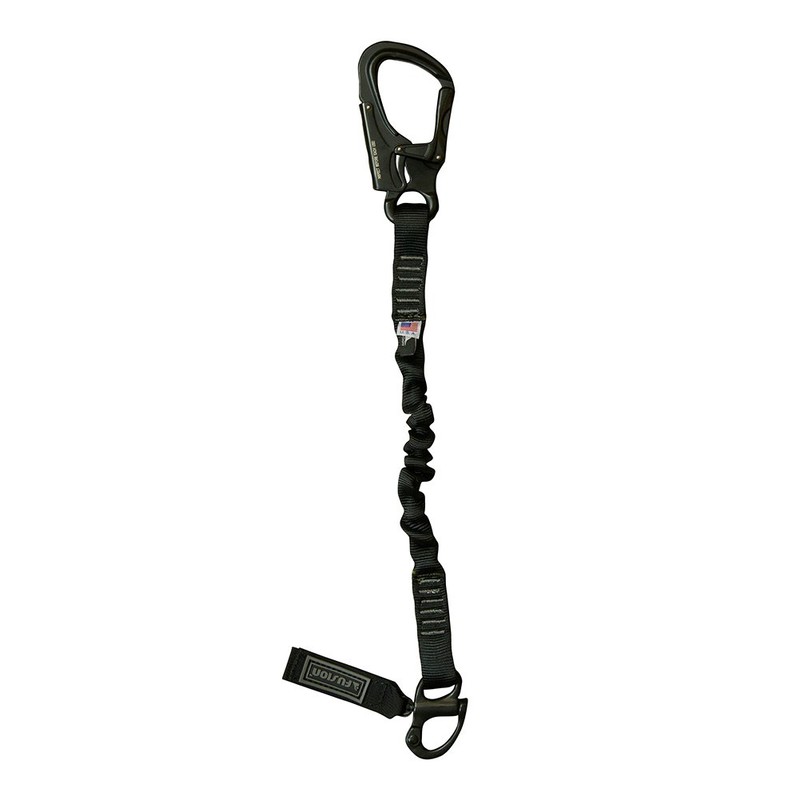 - Feature: Custom weaved webbing allows for a reduced wear from frequent use, when used in line with manufacturer’s instructions. Allowing for a slight stretch with movement due to its bungee design. Also, reduces tripping hazard due to its elastic nature, when not in use the lanyard automatically contracts. Lightweight and single legged.