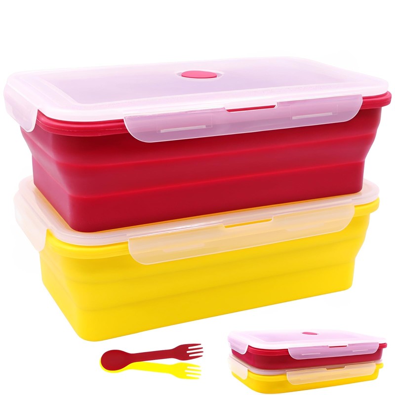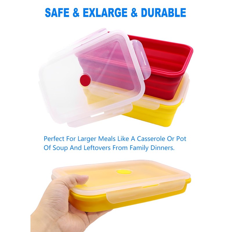 FUSMYE Extra Large Collapsible Silicone Food Storage Containers With Lids, 82.8oz, 2 Pack, XXL Foldable Bento Lunch Box, Big Meal Boxes for Kitchen, Camping, BPA Free (Yellow and Red)