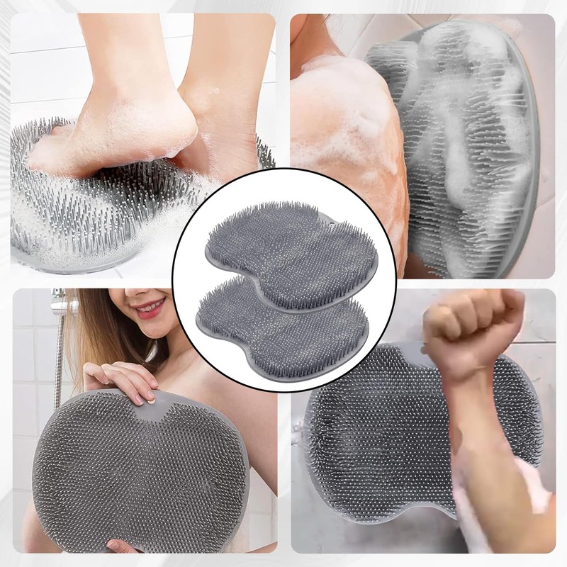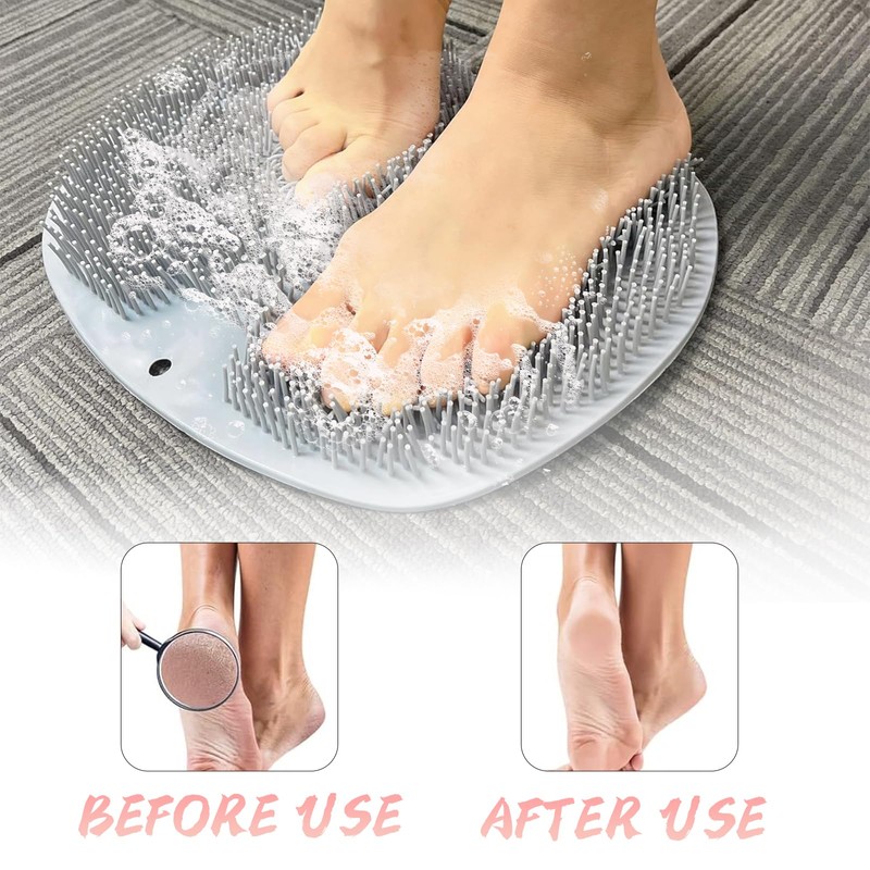 - Praktisches 4er-Set: Enthält 2 graue Fußwaschmatten und 2 Haken zur einfachen Aufbewahrung; Die Fußwaschbürste ist leicht zu installieren und zu reinigen; Perfekt für den täglichen Gebrauch in der Dusche.