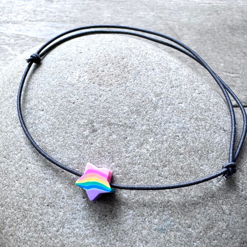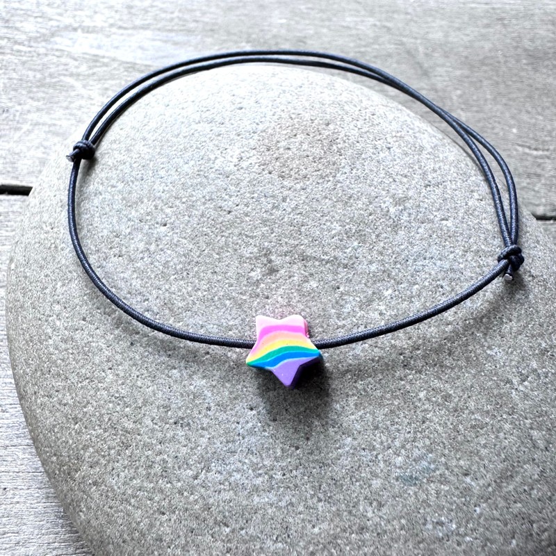 Fußkettchen mit buntem Stern-Anhänger, größenverstellbar, elastisch, sommerliches Fußband mit Stern in Regenbogen - Farben