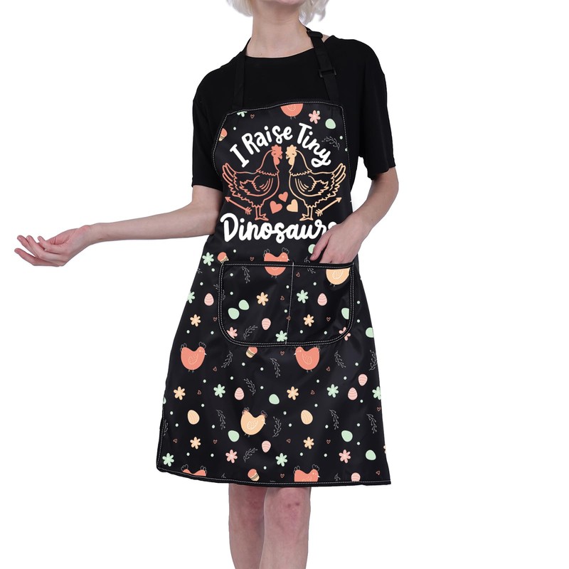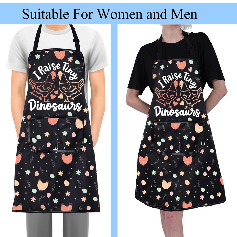 FUSTMW Chicken Aprons for Women with Pockets I Raise Tiny Dinosaurs Chicken Cooking Kitchen Chef BBQ Apron with Pockets (Dinosaurs Chicken Apron)