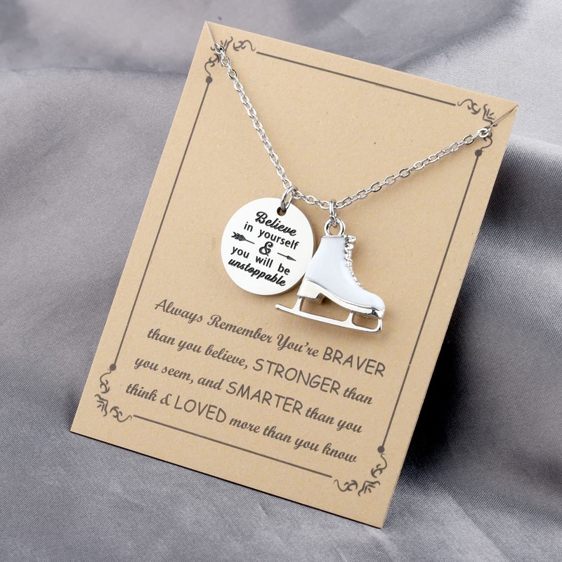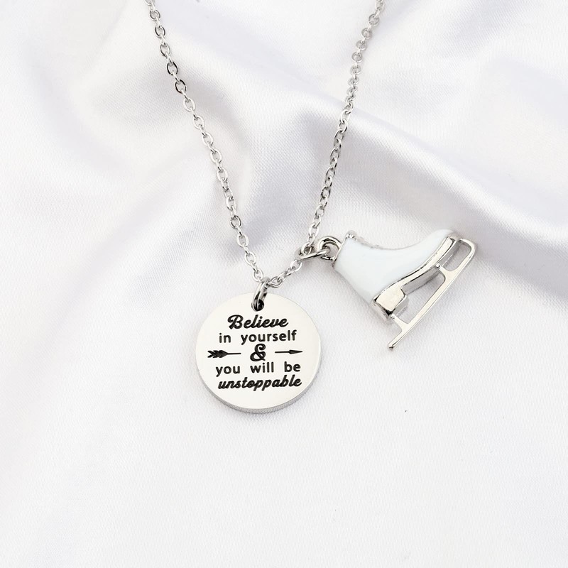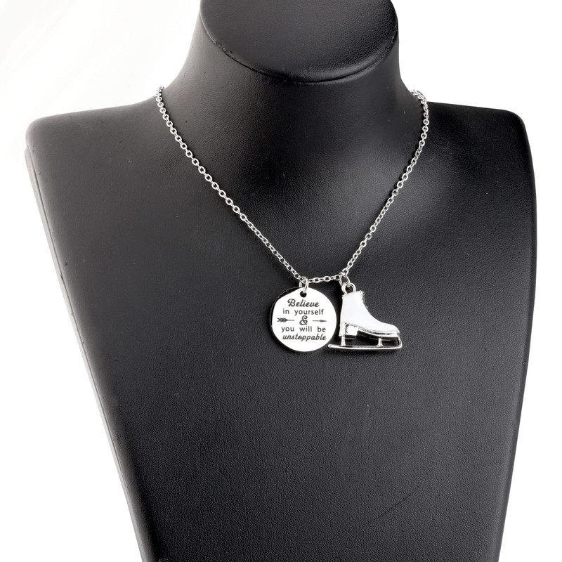 - The snow-white skate pendants necklace are like you are galloping on the ice skating rink at the moment, that is the sport you love and can show your charm and beauty infinitely. This skate necklace is perfect for the figure skater in your life!