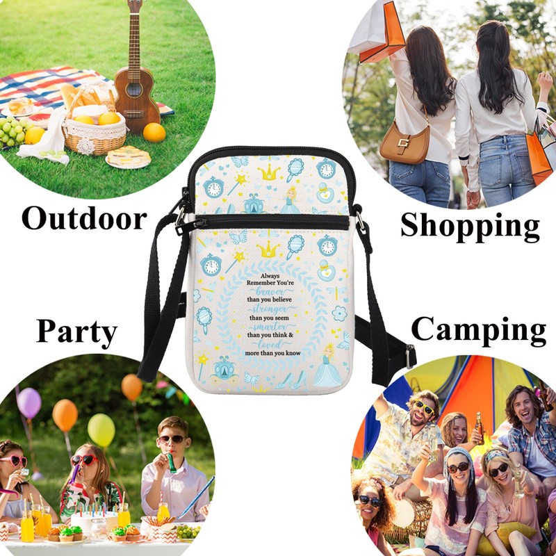 - MATERIAL&PACKING: This Printed Princess Crossbody Bag is Made of Soft Canvas Material with a Sleek Zipper, Hard & Strong with High-Quality Images, and easy to clean. Each Satchel Bag is Packaged in a Zipper Transparent Bag.