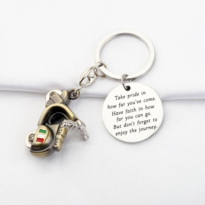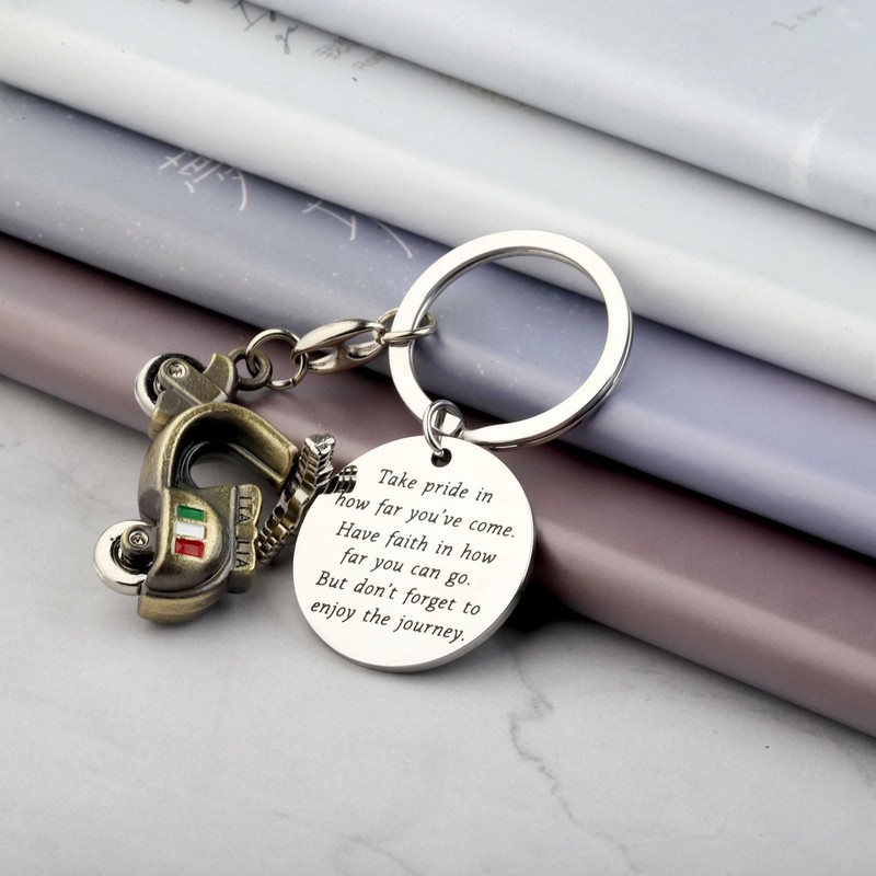 - MATERIAL&SIZE: This scooter charm keychain is crafted of high polish stainless steel. As it is hypoallergenic, no harm to health and very durable suitable for treasure. Key chain pendant 1.18 inches diameter. keyring diameter: 1.18inches.
