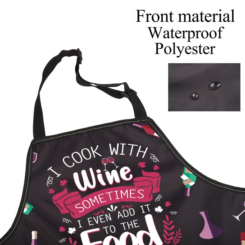 - QUALITY MATERIAL: This wine kitchen apron is made of high-quality waterproof composite material, which is resistant to dirt and abrasion, lightweight, soft, and durable, and can effectively prevent water, splashing oil, printing ink, kitchen grease, spills, and food stains.