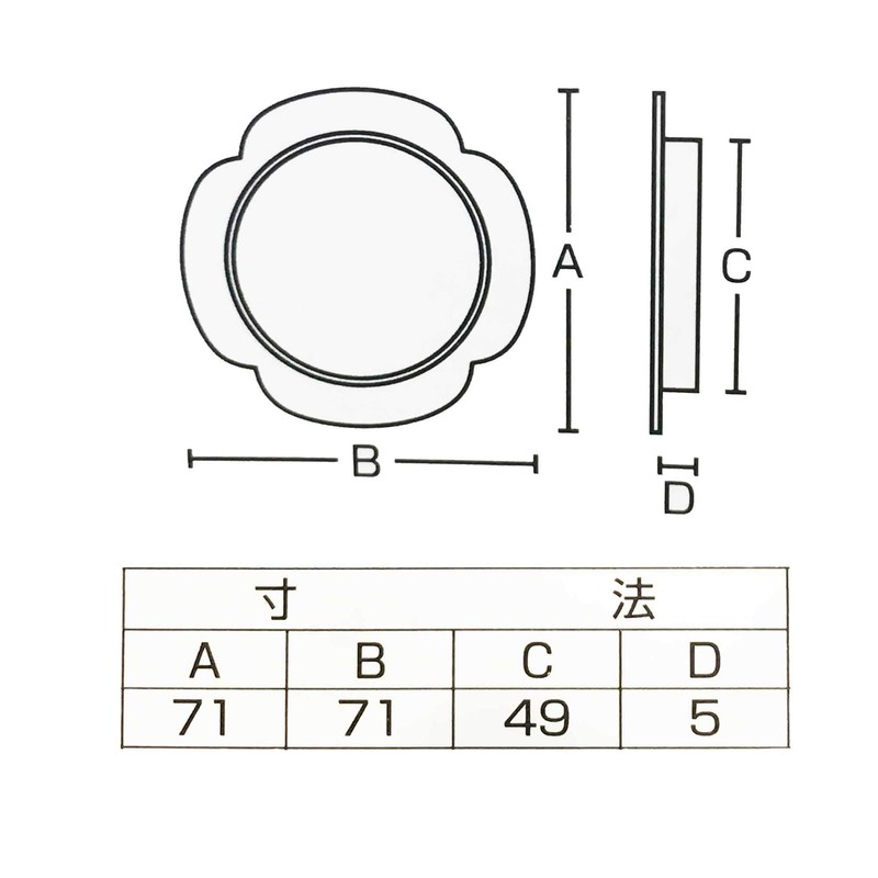Fusuma Pull Handle, 1 Piece, Flower Shape, Black (Black x Silver), Fusuma Pull Round, Bottom Dimensions 2.0 inches (50 mm), Japanese Modern, Western-style [Easy Installation, Pull Nail Included)