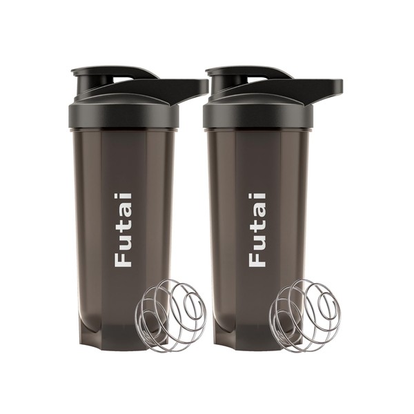 Futai Protein Shaker, 23.7 fl oz (700 ml), Set of 2, Black