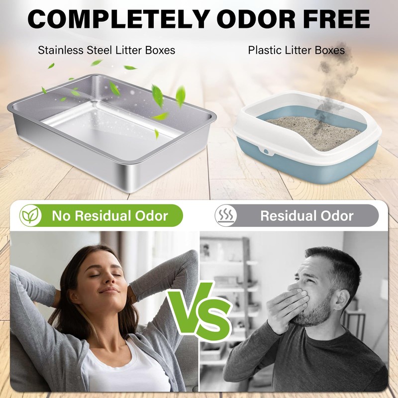 - Metal Cat Litter Box made by high quality stainless steel, tough & heavy duty, and never ever absorbs odors even after years