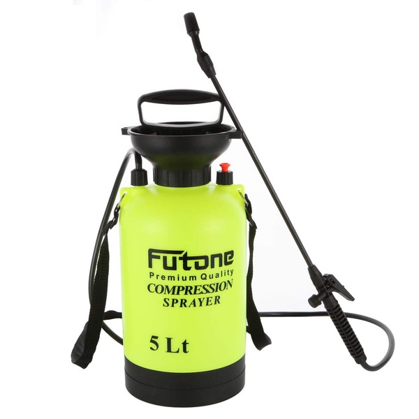 Futone 1.3 Gallon Garden Sprayer Water Pump Pressure Sprayers with Rod Handle and Adjustable Shoulder Strap for Lawn and Garden - (5.0L Lime Yellow)