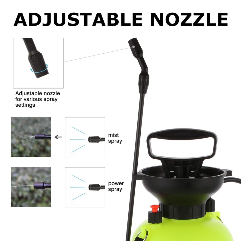 - EFFICIENT DESIGN: Garden sprayer features a long nozzle that facilitates better functioning and further reaching spraying. The adjustable nozzle can be switched between the many spray modes-- from mist to power mode.