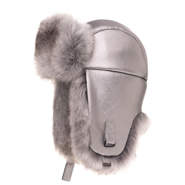 Futrzane Leather Trapper Hat - Russian Hats with Ear Flaps for Men - Bomber Hat (M, Silver - Silver Siberian)