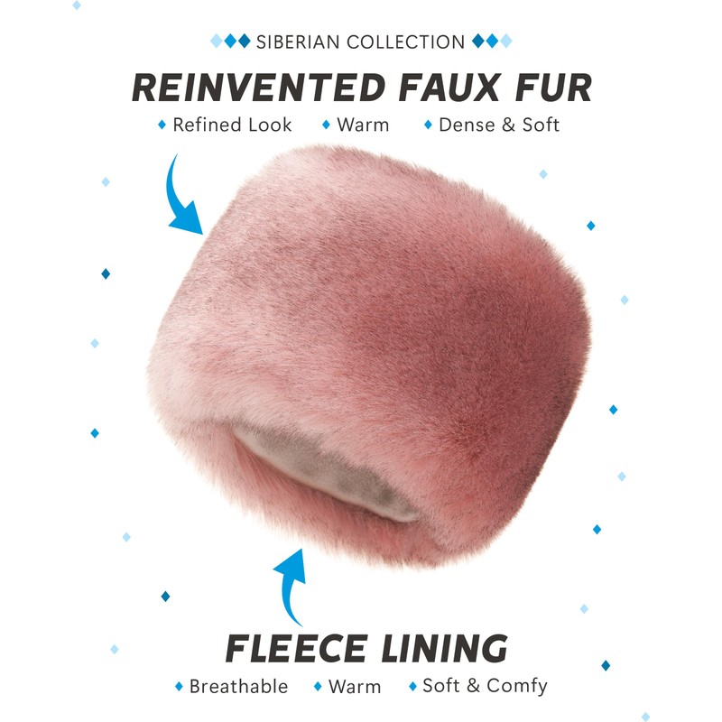 Futrzane Siberian Cossack Hat - Russian Fur Hats for Women - Fluffy Winter Hat (L, Pink Siberian)