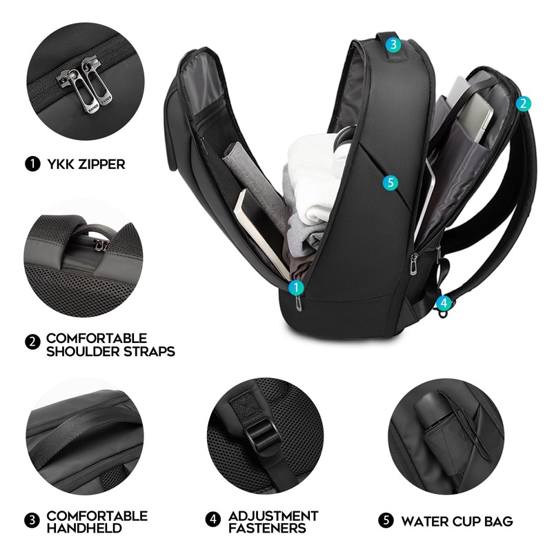FUTURE AESTHETICS Business Smart Backpack Waterproof for women,men,Fight Approved Durable Backpack suitable as overnight and travel backpack (Black)