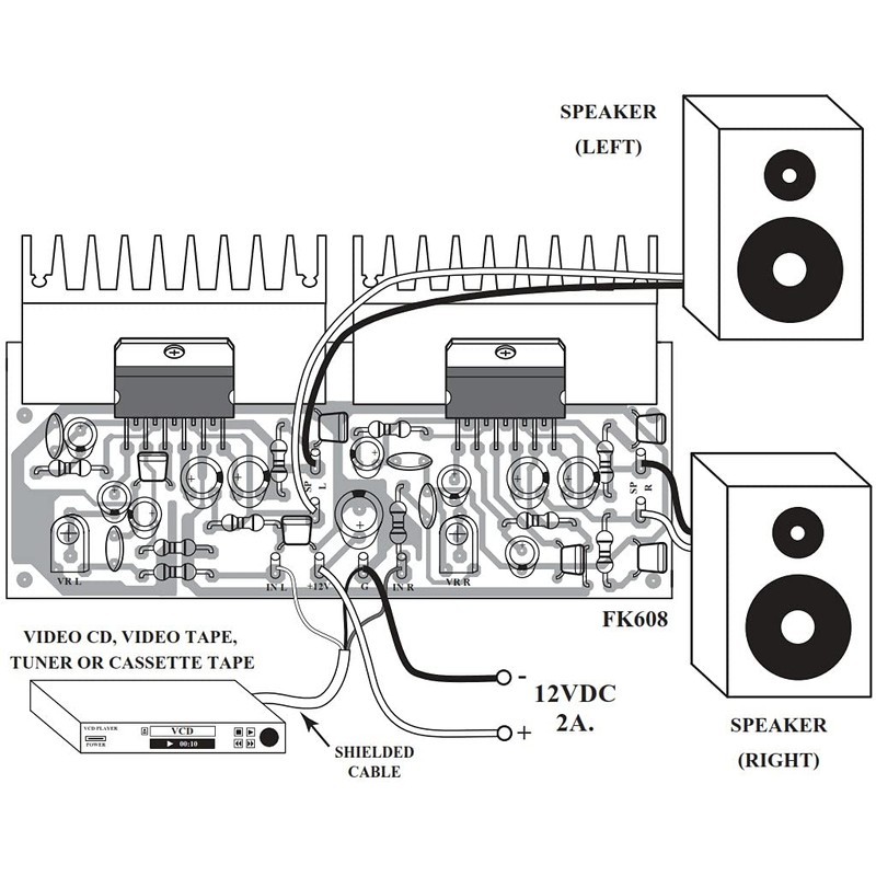 • The circuit amplifies 15W in two channels, perfect for stereo audio. Get two kits and power a serious sound system.