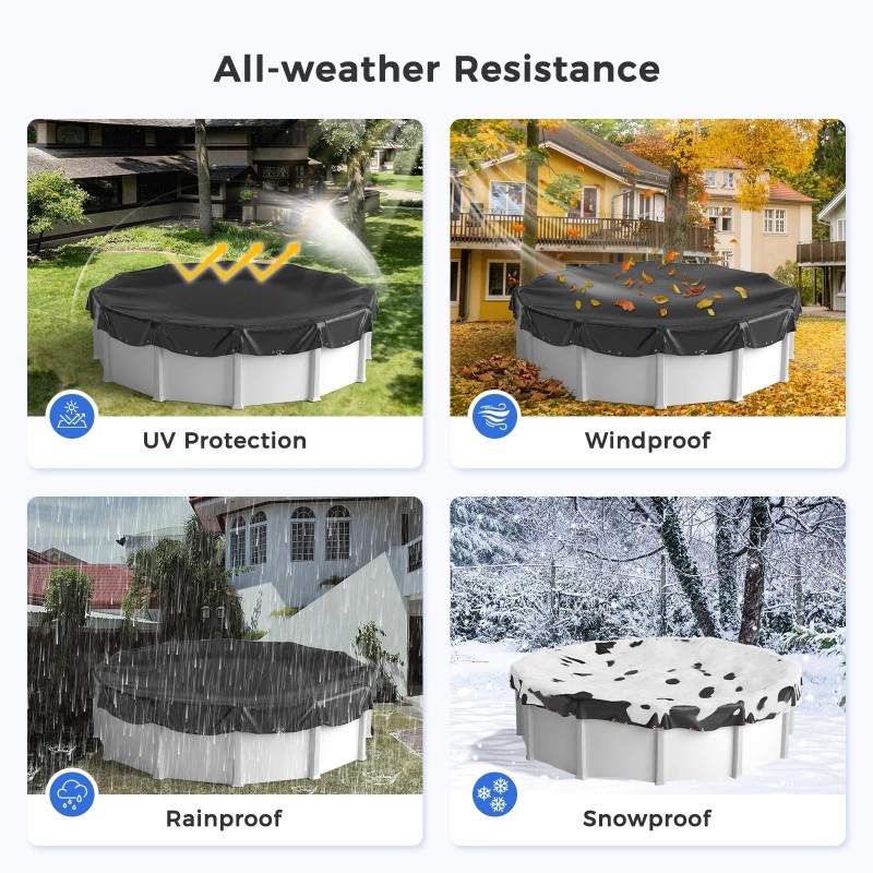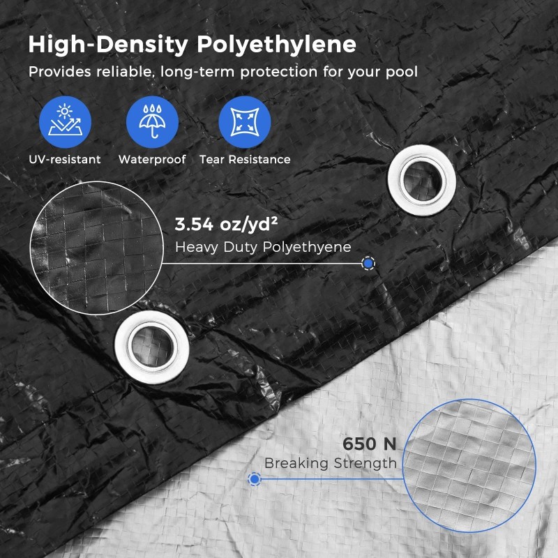 - Optimal Protection: This pool cover for winter effectively blocks rain, snow, debris, dust, leaves, and UV rays, ensuring your above ground swimming pool stays in top condition