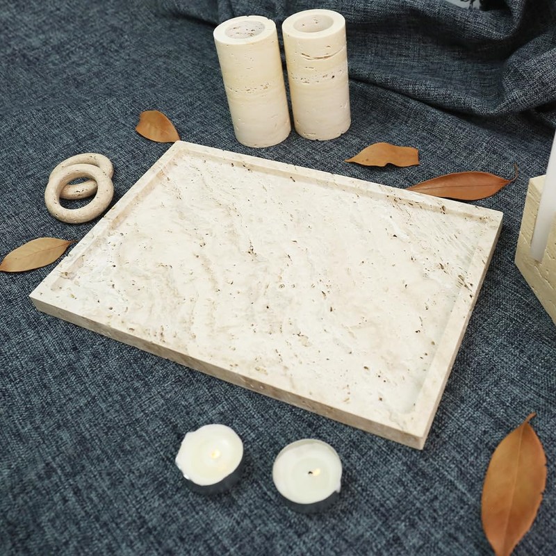 FutureStone Natural Travertine Marble Luxury Tray,12 x 8 inch for Kitchen Sink,Bathroom Soap Bottles,Makeup,Towel Organizer Tray