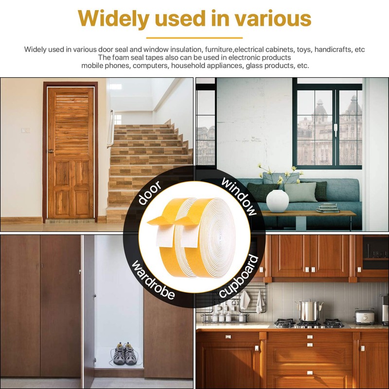 - 【Widely Application Foam Weather Seal】Our single-sided foam tapes are designed for domestic, industrial and commercial use. You can widely use it for Doors, Windows, Air-conditioning, Pipe insulation, furniture, garage doors, sliding doors, electrical cabinets, speakers, toys, handicrafts, sports equipment, hvac, auto, marine and etc.