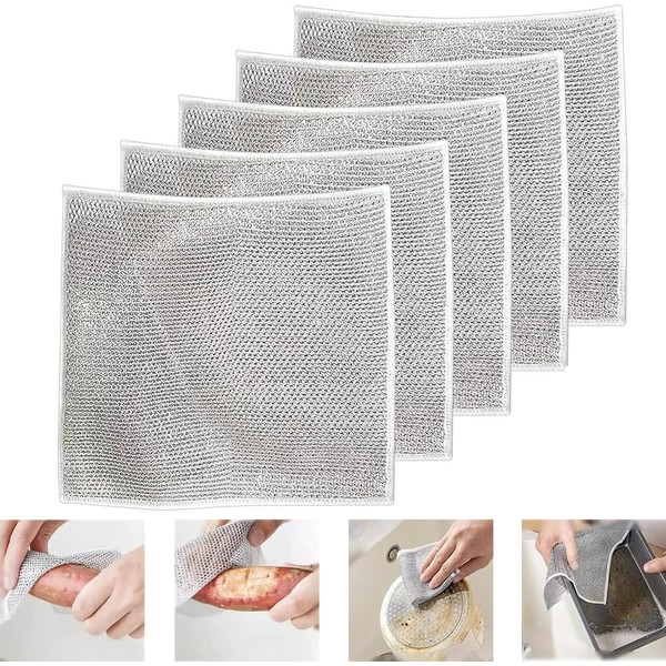 FUVBNQGT 20 PCS Wire Dishwashing Cloths, Non-Scratch Multipurpose Steel Wire Dishcloths, Multipurpose Cleaning Cloths, Durable Stainless Steel Scourers for Kitchen, Dish, Sink, Stove Top Scrubbing