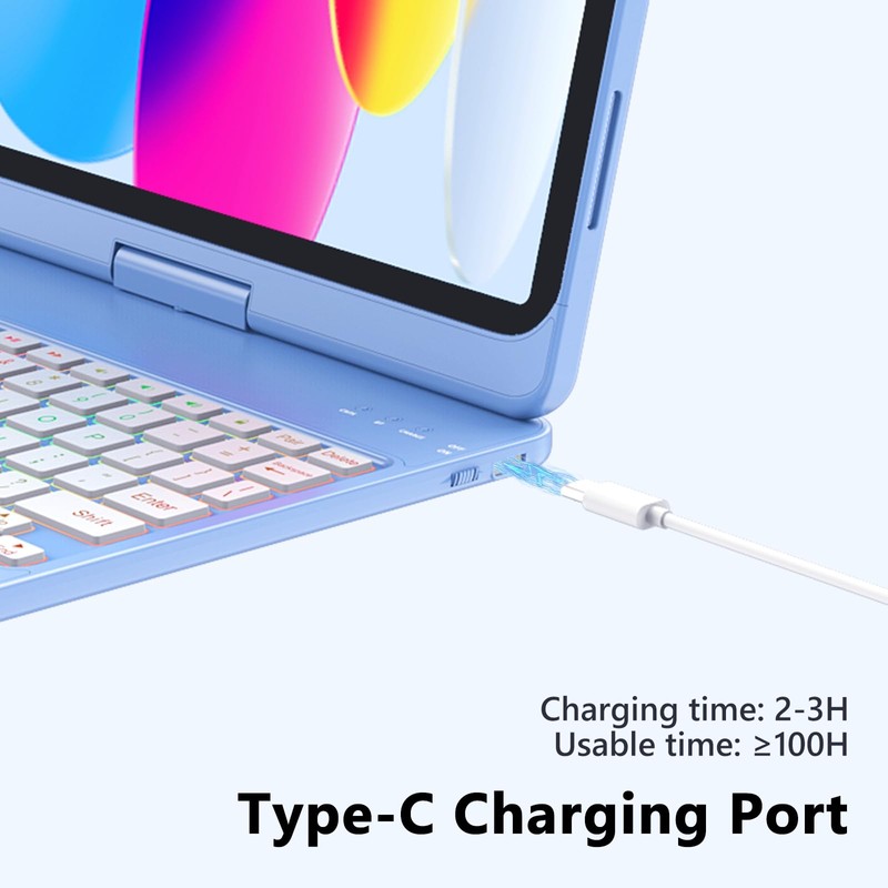 - 7 Colors Backlit keyboard case for iPad 10th Generation: Type quickly and accurately on a laptop-like keyboard with a full row of tablet shortcuts that allow an adjustable 7-color RGB LED backlight to shine through