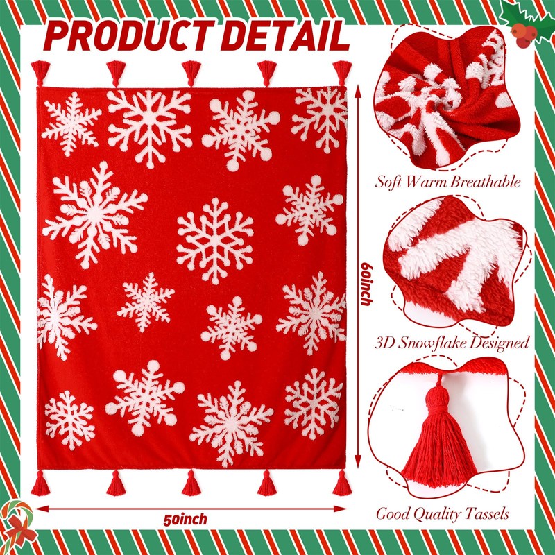 • Unique Design: in order to welcome the arrival of Christmas, we specially prepared a Christmas atmosphere of blankets, with 3-Dimensional snowflake design patterns; The color is mainly red, with a strong and cheerful festive atmosphere; It will add a pop of color to your Christmas decorations wherever you place it
