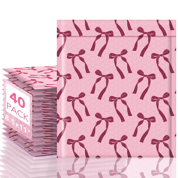 Fuxury Bubble Mailers 8.5x12 40 Pack, Pink Bows Cute Design Bubble Envelopes Usable Size 8.5x11",Strong Adhesion Pattern Padded Shipping Envelopes Thick Mailer for Mailing Books,Clothes