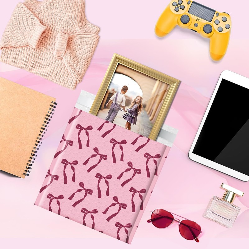 • Perfect Size Pink Bows Bubble Mailer: The poly bubble mailers outer size is 8.5x12 inch, while the inner size is 8.5x11 inch. It is very suitable for transporting clothes, comic book, photos, handcraft and more.Great for small business packing,shipping gifts cushioning mailer.