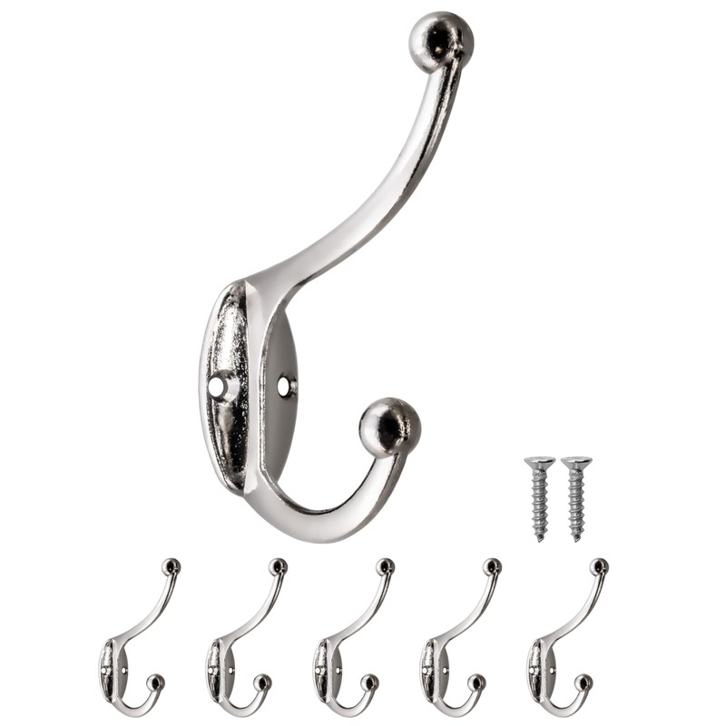 - 5 x stylish double hooks made of solid iron in shiny chrome look - functional and decorative at the same time