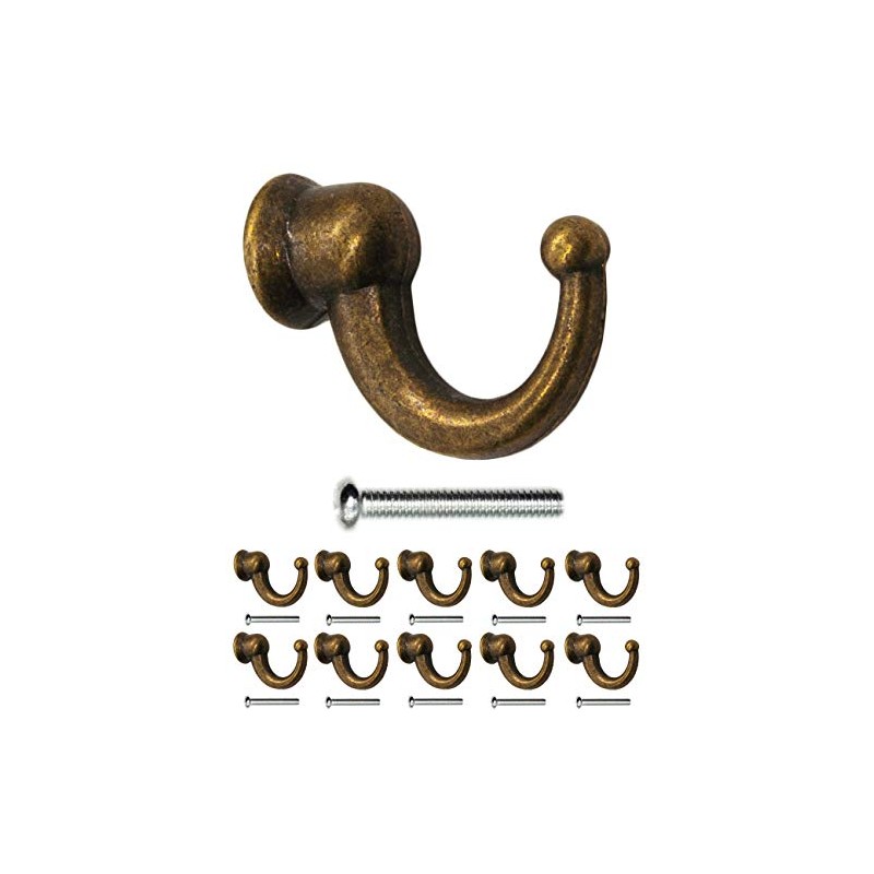 FUXXER® - Antique coat hooks, towel hooks, clothes hooks, iron hooks, brass bronze design, vintage country house, retro, 29 x 20 mm, set of 10