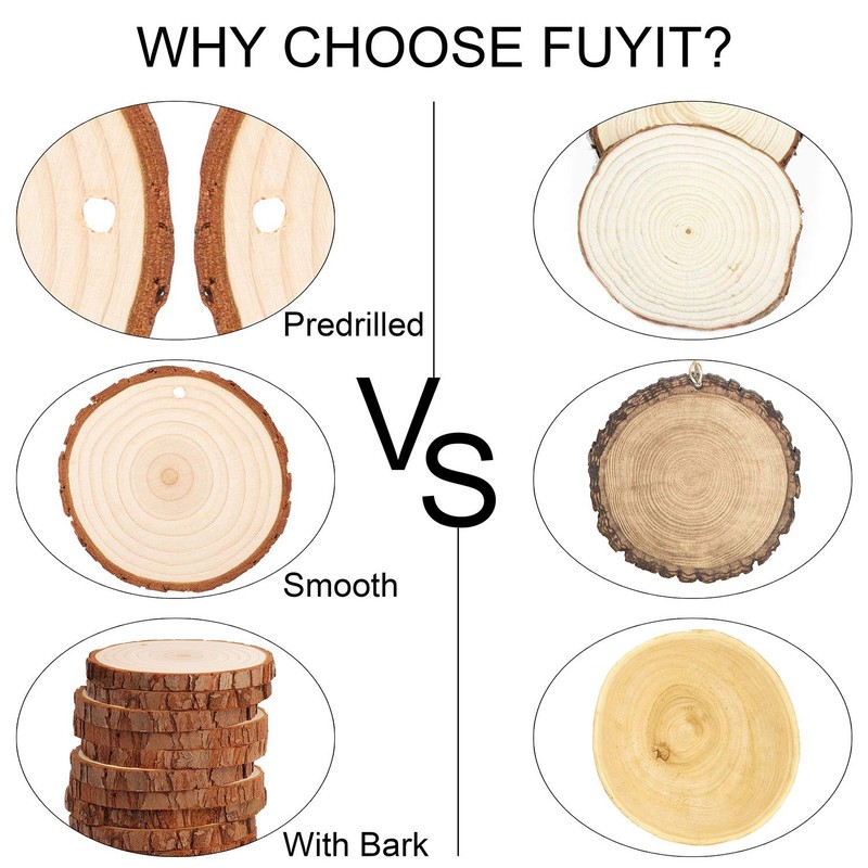 Each wooden slice is smoothed and polished to a smooth surface and pre-drilled with a small hole for you to make hanging ornaments easily.