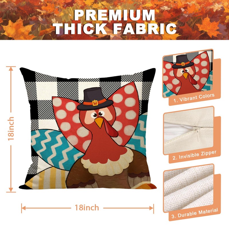 - 【SIZE & PACKAGE 】This thanksgiving pillow covers fits 18x18 inch inserts, Set of 4 holiday pillow covers. No Insert or Filler. Pattern is only on the front and no printing on the back.