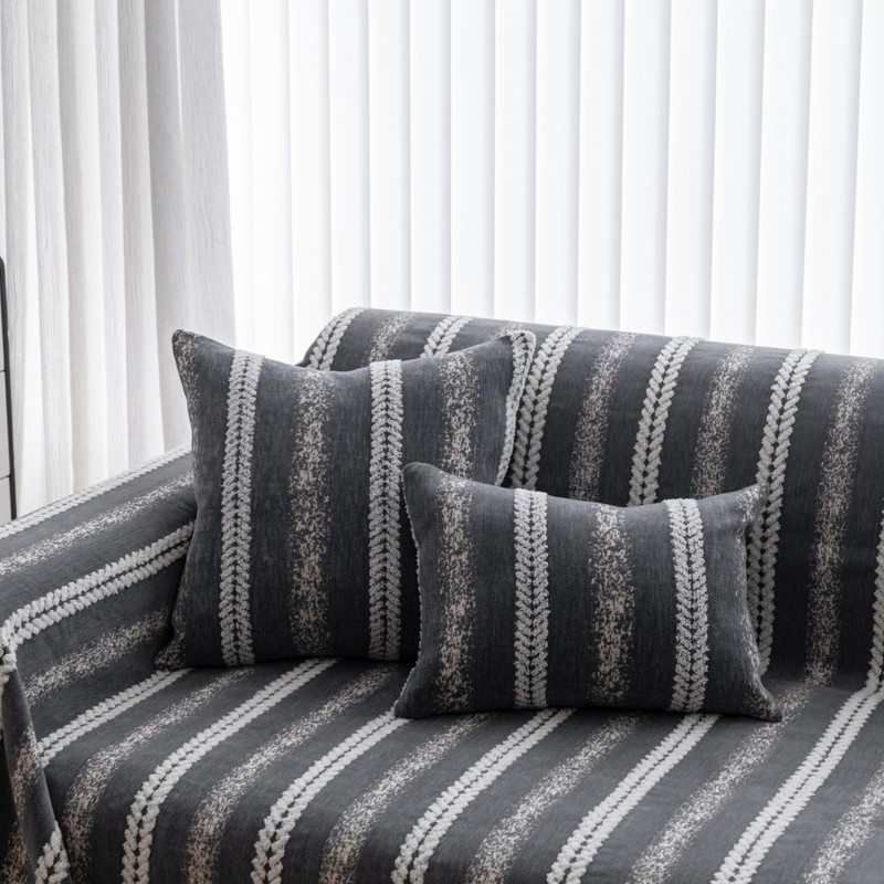 Fuyulacom Pack of 1 Decorative Throw Pillow Covers 12x20 Inch, Pillow Cases for Living Room Couch Bedroom Farmhouse Home Decor, Soft Stripe Chenille Cushion Covers for Sofa Grey,12''x20''